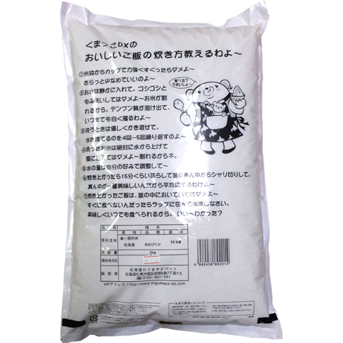 袋の裏側には、北海道ひぐまやデパートのイメージキャラクター「くまっこDX」が全力で最高のお米の炊き方を、どこかで見たような口調で説明してくれます。必見です!