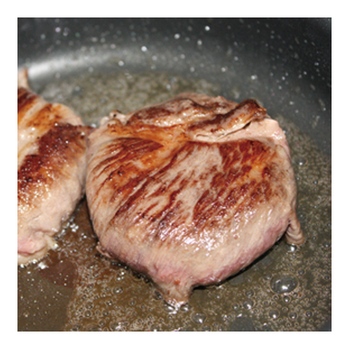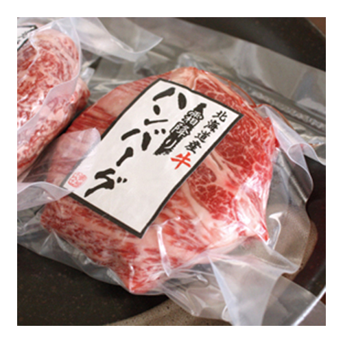 北海道産の牛肉に北海道産の原料を豊富に使用し、出来上がったハンバーグを北海道産霜降りの牛肩ロースで包み込むことにより、牛肉本来の歯ごたえと、ハンバーグのジューシーな旨味をぎっしりと詰め込み、肉汁がジュワーっと出るハンバーグです。