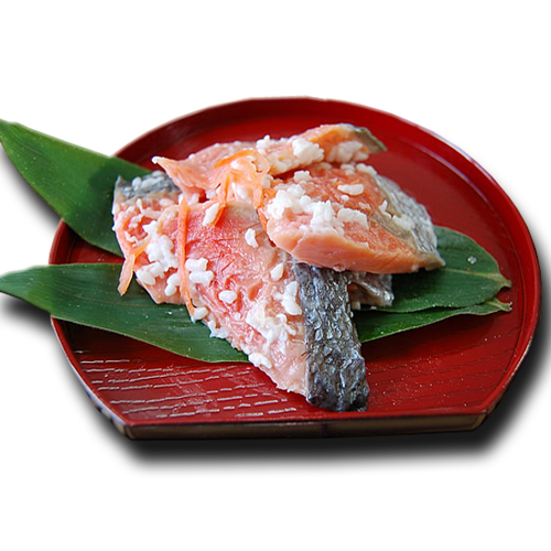 真っ赤で肉厚、しかも脂がしっかりと乗ったロシア及びカナダ産の紅鮭を、地元伊達産の米、人参、北海道産の米麹で、しっかりと漬け込み、いずしに製品化しました。紅鮭の素材の旨みが生きた郷土料理を味わいください。