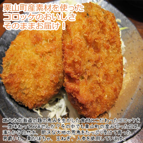 じゃがバターコロッケ:栗山産男爵芋に北海道産バターをたっぷり混ぜ込みました。風味豊かな北海道の味をご堪能下さい。