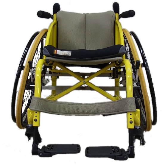 通常車いすとスポーツ用車いすの違いは、そのタイヤの角度と車軸に一番の特徴があります。 通常の車いすは、車輪が車軸に直角についていますが、スポーツ用車いすは、写真のように「ハの字」の角度のついた車輪がついています。 この「...