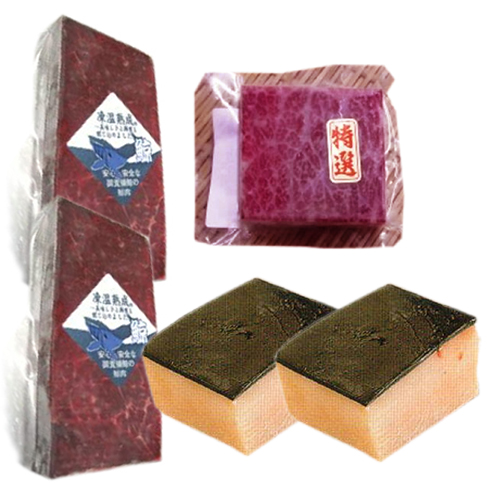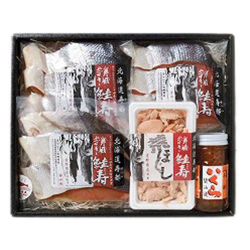 鮭はやっぱり北海道でしょう。甘口辛口色々ね。それにおすすめは津軽海峡で釣った本マグロよ。絶対に美味しいわよ!祝辞の一本売りもあるわよ。先立って友達のお店の1周年記念に送ったわ。大変喜ばれたわね。びっくりさせてみてよ。あ、そうそう。懐かしい鯨肉もあるのよ!